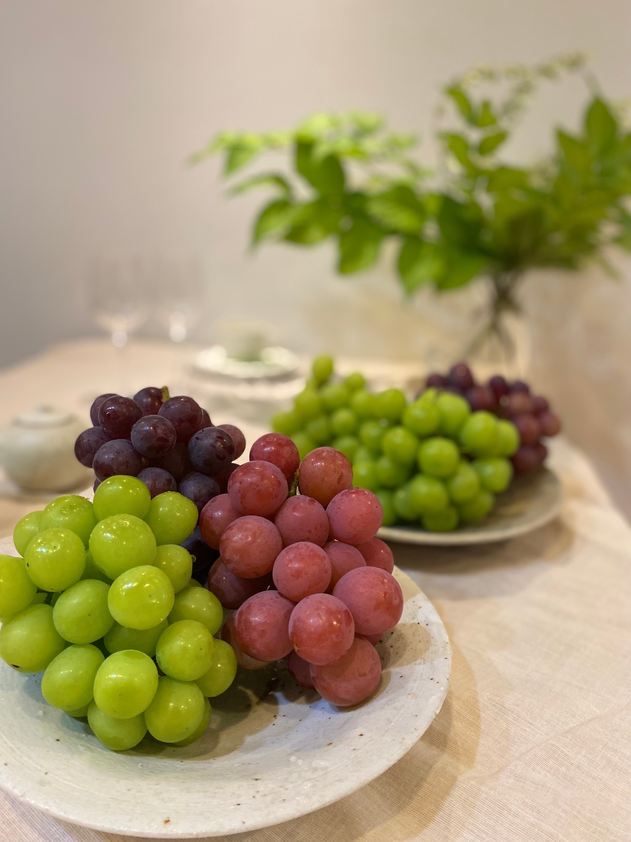 緑ぶどう、赤ぶどう、黒ぶどうの3色がきれいです。贈り物にも最適だと思います。